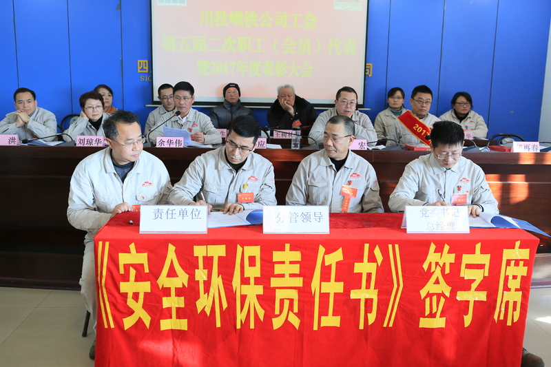 1月16日,川投峨鐵五屆二次職工(會員)代表暨2017年度表彰大會。川投峨鐵黨委委員、紀委委員、領導班子成員、部分退休老領導、勞模和先進職工代表就座主席臺,103名正式代表、24名列席與特邀代表參加了大會。大會川投峨鐵黨委副書記、紀委書記、工會主席余華偉主持。