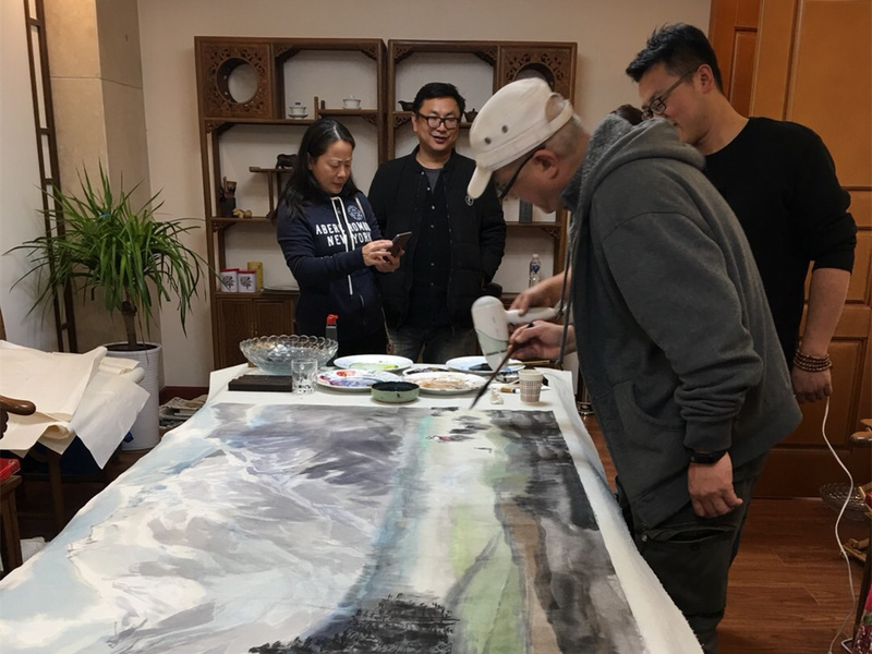 11月10日晚,書畫家們?cè)谔餅澈庸倦娬緺I(yíng)地舉行了以田灣河為主題的書畫筆會(huì)交流活動(dòng)。書畫家們揮毫潑墨,根據(jù)兩天來在田灣河的所見、所想,按照自己的專業(yè)創(chuàng)作了相應(yīng)的繪畫作品,并與公司書畫愛好進(jìn)行了交流和專業(yè)指導(dǎo)。