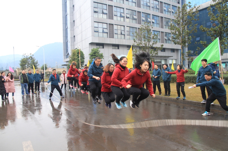 運動會以各工會小組為單位,其中川投氣電綜合經(jīng)營工會小組和達州經(jīng)開區(qū)總工會聯(lián)合為單位進行組隊,共三個代表隊參加角逐。本次趣味運動會設“集體跳繩”“袋鼠跳跳”“背夾球”“滾輪胎”“同舟共濟”和“拔河”六個比賽項目。比賽當天,雖然天空下著小雨,但沒有阻擋運動員們的比賽激情。隊員們笑容滿面,精力充沛,全力投入,場上不時爆發(fā)出陣陣掌聲為運動員們勇于拼搏的精神歡呼,真正的賽出了員工風采,賽出了集體的凝聚力。整個運動會的氣氛熱烈而又緊張,為元旦佳節(jié)的到來增添了一份喜悅。