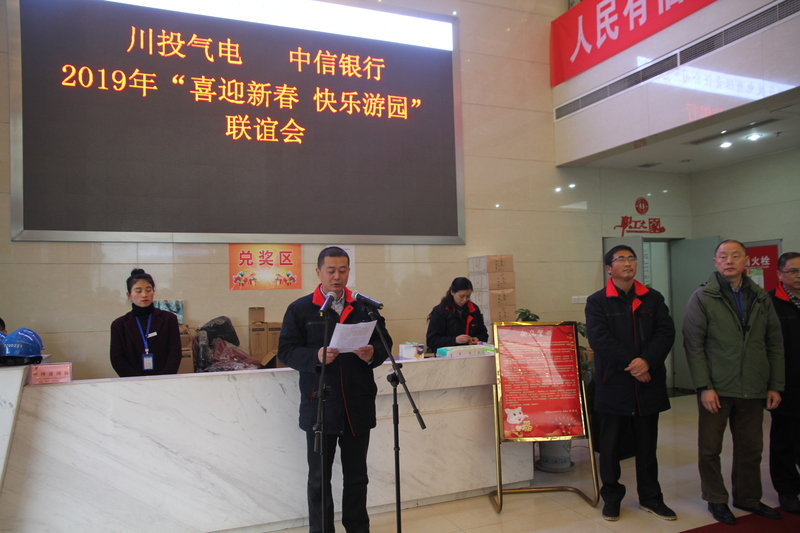 為豐富員工的業(yè)余生活,增進友誼,營造熱烈、喜慶、祥和的節(jié)日氣氛,1月30日,川投氣電和中信銀行達州分行在川投氣電公司聯(lián)合舉辦了“喜迎新春、快樂游園”聯(lián)誼會。游園活動開始前,川投氣電黨委書記、董事長楊超龍以及中信銀行達州分行黨委書記、行長吳新華致新春賀詞。