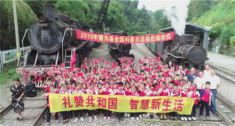 犍為縣委常委、總工會(huì)主席何毅介紹了犍為縣近年科普活動(dòng)的特點(diǎn)和取得的成果,并代表縣委、縣政府對(duì)支持科普活動(dòng)的各界人士表示感謝。隨著他宣布:“2019年犍為縣全國(guó)科普日活動(dòng)啟動(dòng)儀式開幕!”蒸汽小火車?guó)Q響汽笛,同學(xué)們舉起小紅旗歡呼致意,也標(biāo)志著犍為縣2019年全國(guó)科普日活動(dòng)正式啟動(dòng)。