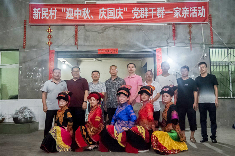 在結(jié)束了“金秋助學(xué)”活動(dòng)后,受新民村村委會(huì)邀請(qǐng),集團(tuán)派駐金口河區(qū)馬庚、高峰、沈忱等三位駐村干部與駐新民村干部陳聯(lián)兵一起參與了新民村慶中秋系列活動(dòng)。四位駐村干部向廣大村民發(fā)放了象征團(tuán)圓的月餅,并與村民一起跳起了民族舞蹈。