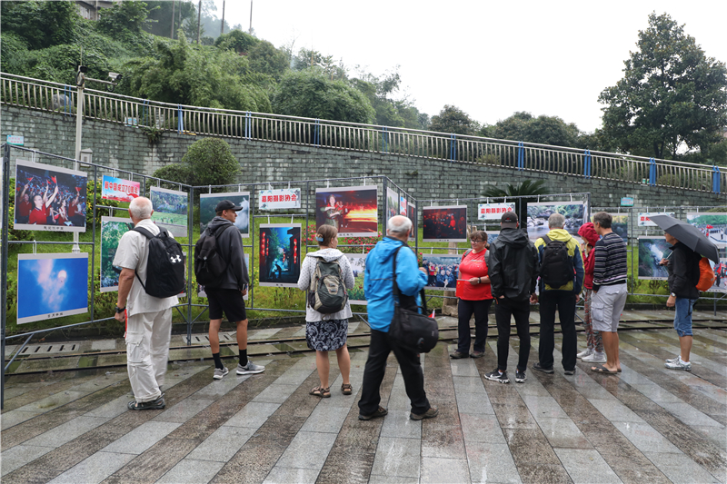 此次攝影展展出地點分別設(shè)在礦山公園主碑廣場和電影院多功能廳,展覽將持續(xù)到國慶節(jié)后。9月24日早上,一群前來乘坐嘉陽小火車的捷克游客駐足攝影展前,饒有興致地觀看影展,特別對嘉陽小火車風(fēng)光照片連聲稱贊拍手叫絕。