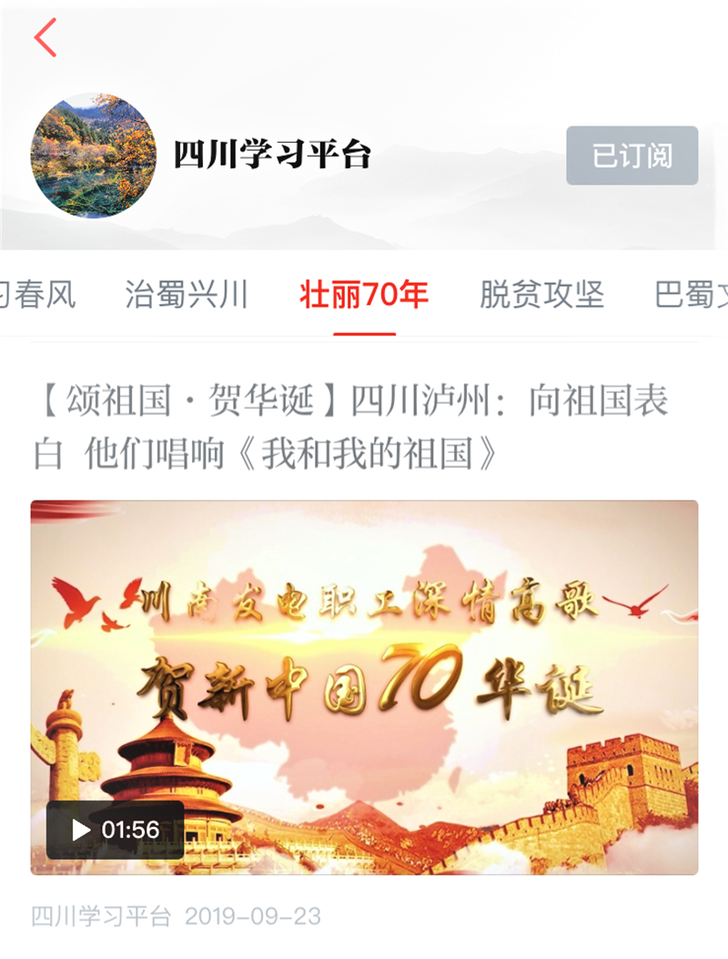 9月23日,川南發(fā)電拍攝的獻(xiàn)禮新中國成立70周年MV《我和我的祖國》在“學(xué)習(xí)強(qiáng)國”平臺(tái)公開展示。
