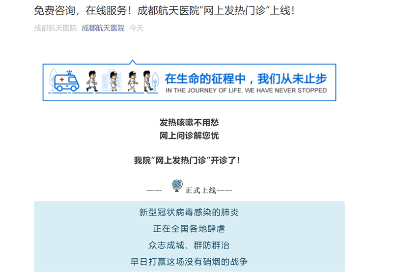 截至目前,開發(fā)的網(wǎng)上發(fā)熱門診已在四川省護(hù)理職業(yè)學(xué)院附屬醫(yī)院、成都市第三人民醫(yī)院、成都航天醫(yī)院等多家醫(yī)院推廣應(yīng)用,另有多家醫(yī)院正積極籌備開通。
