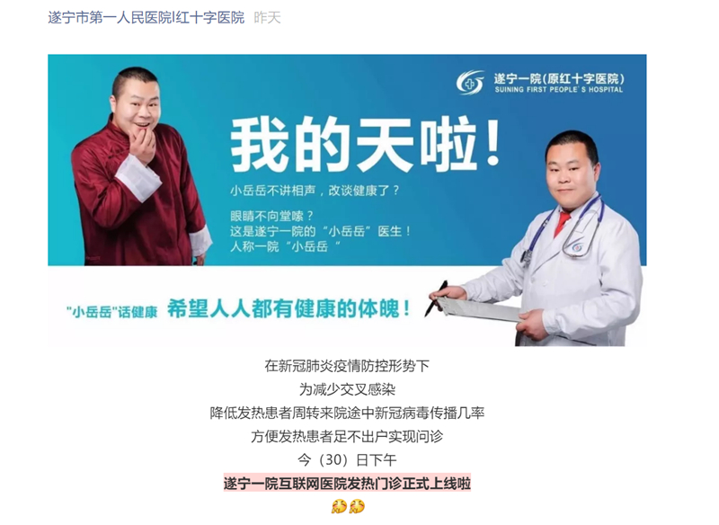 1月25日(初一),作為四川省首批新型冠狀病毒肺炎市級(jí)定點(diǎn)醫(yī)療救治醫(yī)院,遂寧市第一人民醫(yī)院向川投信產(chǎn)所屬天府智鏈公司提出,為緩解醫(yī)院發(fā)熱門診就診壓力,希望幫助醫(yī)院盡快開發(fā)互聯(lián)網(wǎng)醫(yī)院網(wǎng)上發(fā)熱門診功能。