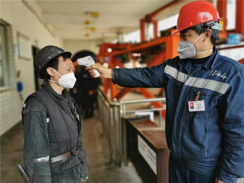 煤礦是嘉陽集團的主業(yè),面臨員工人數(shù)最多(近1500人)、員工構(gòu)成復雜(絕大多數(shù)采掘工來自農(nóng)村)、人員流動性較大等諸多疫情防控不利因素,雖然前期針對疫情變化順勢而動做了很多工作,但煤礦周全考慮復產(chǎn)會產(chǎn)生人員流動和聚集情況,全礦堅持繼續(xù)嚴格執(zhí)行2月2日出臺的防疫方案和措施,防疫管理領(lǐng)導小組、疫情管理辦公室和執(zhí)行小組上下聯(lián)動抓好細節(jié)工作,側(cè)重要求各隊各部門負責人認真詢問職工及家屬身體情況和有無接觸疫區(qū)人員情況,每日進班職工在進班入口、各隊入口和入井檢身室檢測體溫“過三關(guān)”,做到三班無縫對接,確保職工體溫正常、精神狀態(tài)良好方可入井作業(yè)。開班第一周不組織職工集中安全學習,各隊利用進班會和現(xiàn)場“傳幫帶”方式進行學習引導,進班、入井、下井要求職工全程佩戴口罩。