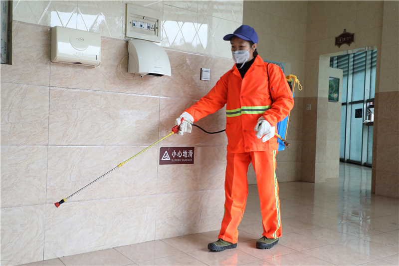 按照預(yù)定計劃,環(huán)衛(wèi)班消毒范圍包括新老兩個礦區(qū)和一個石溪片區(qū),礦區(qū)中一個觀音溪花園面積就達5000平方米,細算下來消毒區(qū)域達數(shù)萬平方米!“出門戴口罩,別去湊熱鬧……”耳旁不時傳來防疫宣傳知識和舉措,原來在綠化班常常形影不離的鄧容和鄧瓊兩姐妹因分工區(qū)域不同,第一天抗“疫”卻要分開了,而且必須到處串,所到之處必須消毒無遺漏,她們深知防疫工作最終要落實到基層,落實到每個人的行動,自己的崗位正是基礎(chǔ)中的重中之重!