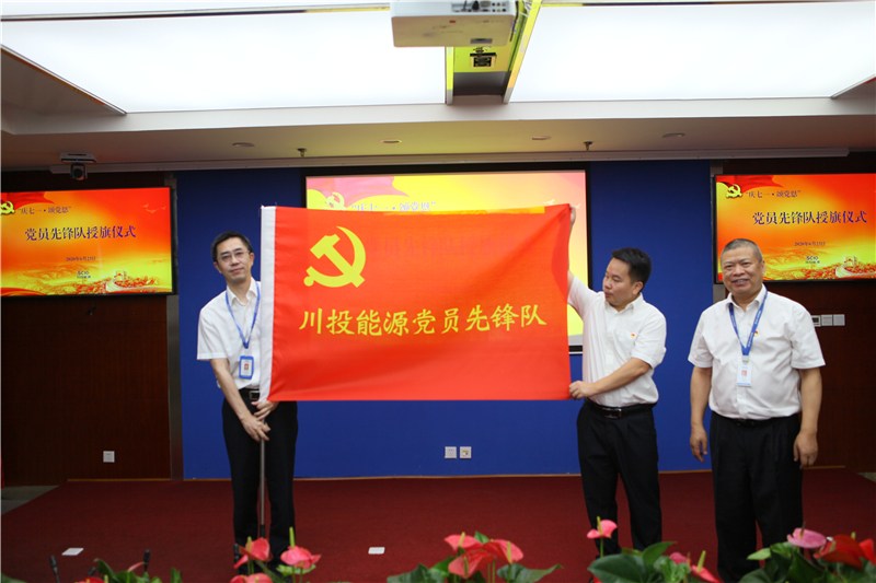 值此川投能源“紅色引擎藍(lán)籌先鋒”(簡稱“五個(gè)先鋒”)黨建品牌創(chuàng)建工作引向深入之際,6月23日,川投能源黨委采用現(xiàn)場和視頻會(huì)議相結(jié)合的方式,以黨員承諾踐諾、黨員先鋒隊(duì)授旗、發(fā)布公司黨建品牌標(biāo)識以及公司黨委書記講黨課等內(nèi)容為載體,組織全體黨員、入黨積極份子、新黨員代表隆重召開紀(jì)念建黨九十九周年大會(huì),為中國共產(chǎn)黨第99個(gè)生日獻(xiàn)上賀禮。公司黨委副書記、工會(huì)主席楊超龍主持會(huì)議。