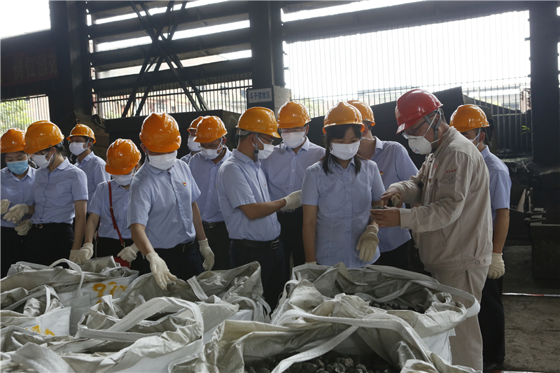 微雨初歇,和風拂面,陳新龍等陪同毛建總會計師及楊維娜書記一行先后參觀了公司主廠區(qū)、節(jié)能一廠生產(chǎn)車間及產(chǎn)品包裝場、儲運公司原料場以及設備保障中心檢修車間等,觀看了產(chǎn)品澆注過程,詳細了解了公司產(chǎn)品的生產(chǎn)工藝流程,實地體驗了公司冶煉、產(chǎn)品加工與包裝等崗位作業(yè)現(xiàn)場及工作環(huán)境。