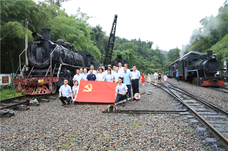 學(xué)習(xí)交流組成員們登上“川投先鋒號(hào)”車(chē)廂中,一邊跟隨蒸汽小火車(chē)穿越時(shí)空,一邊聆聽(tīng)嘉陽(yáng)煤礦80多年的發(fā)展歷程,了解芭石鐵路建成的艱辛,感受旅游轉(zhuǎn)型帶來(lái)的生機(jī);來(lái)到芭蕉溝的東方紅廣場(chǎng)和毛澤東思想大舞臺(tái),找尋年代記憶,回憶這里曾經(jīng)進(jìn)行文化演出、體育活動(dòng)、群眾集會(huì)的熱鬧場(chǎng)面;在影劇院莊嚴(yán)重溫入黨誓詞,初心不改,繼續(xù)前行;參觀(guān)博物館了解嘉陽(yáng)的抗戰(zhàn)文化、紅色文化、礦山文化;深入全國(guó)唯一真實(shí)體驗(yàn)觀(guān)光礦井黃村井,讓黨員同志們感受當(dāng)年煤礦工人的艱辛,感悟礦工的燃燒精神;瞻仰馬廟烈士紀(jì)念碑,獻(xiàn)花注目,緬懷英烈,更加珍惜當(dāng)下偉大的時(shí)代和安居樂(lè)業(yè)的生活;碧波逐浪桫欏湖,聆聽(tīng)抗戰(zhàn)運(yùn)煤的歷史,飽覽原生態(tài)凈地……
