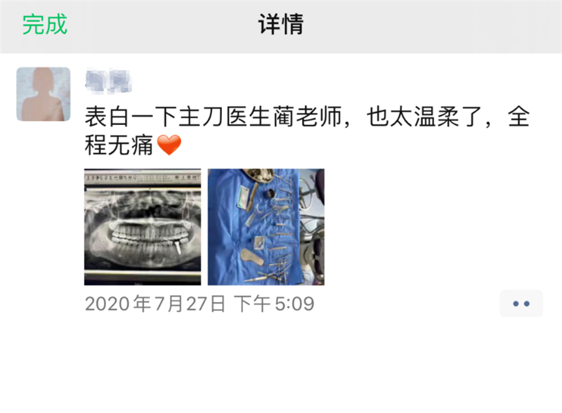 患者在手術(shù)完成后,點(diǎn)贊主診醫(yī)生!表示在全程無(wú)痛中進(jìn)行種植手術(shù),感到前所未有的放心。該患者將在3個(gè)月恢復(fù)期后,到院進(jìn)行佩戴牙冠,最終完成種植牙的診療。