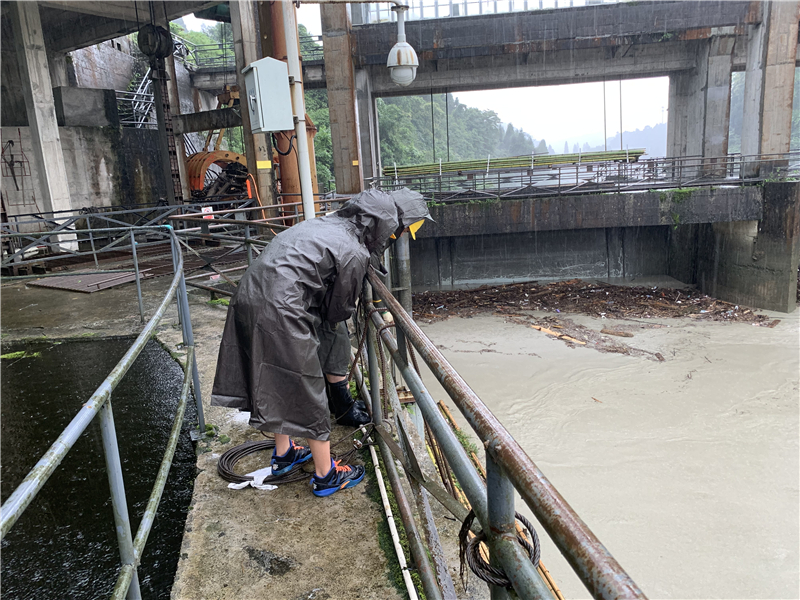 11日4時25分起,根據(jù)降雨情況及河道水位上漲趨勢,公司先后啟動Ⅳ、Ⅲ級防洪預(yù)案,13時30分,經(jīng)請示市防辦同意,公司果斷采取措施泄洪避砂,一是逐步加大泄洪清空鳳鳴湖水庫庫容,二是關(guān)閉隧洞進水閘防止隧洞淤堵并借機清理攔污柵,三是機組停機避砂防止受損。17時19分,鳳鳴湖大壩開啟 1、2、3#弧門泄洪清庫,各車間、黨員突擊隊抓緊時間完成攔污柵清理、設(shè)備搶修、壓力管道沿線排水溝及邊坡等維護檢查工作。為確保彭州市城區(qū)飲用水,8月12日4時20分起,公司啟動蓄水并作好恢復(fù)供水和供電的準(zhǔn)備,截至12時45分,4臺機組全部恢復(fù)發(fā)電生產(chǎn)。本次強降雨極端天氣過程中停機時間不超過9小時,實現(xiàn)了飲用水保供和汛期人員、設(shè)備及生產(chǎn)安全。