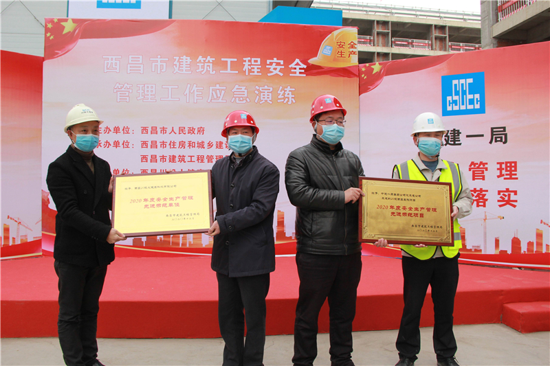 活動(dòng)最后,西昌市副市長(zhǎng)冉洪全、西昌市住房和城鄉(xiāng)建設(shè)局局長(zhǎng)唐良金對(duì)西昌川投大健康科技有限公司和中建一局川投西昌醫(yī)院項(xiàng)目部進(jìn)行了表彰授牌。