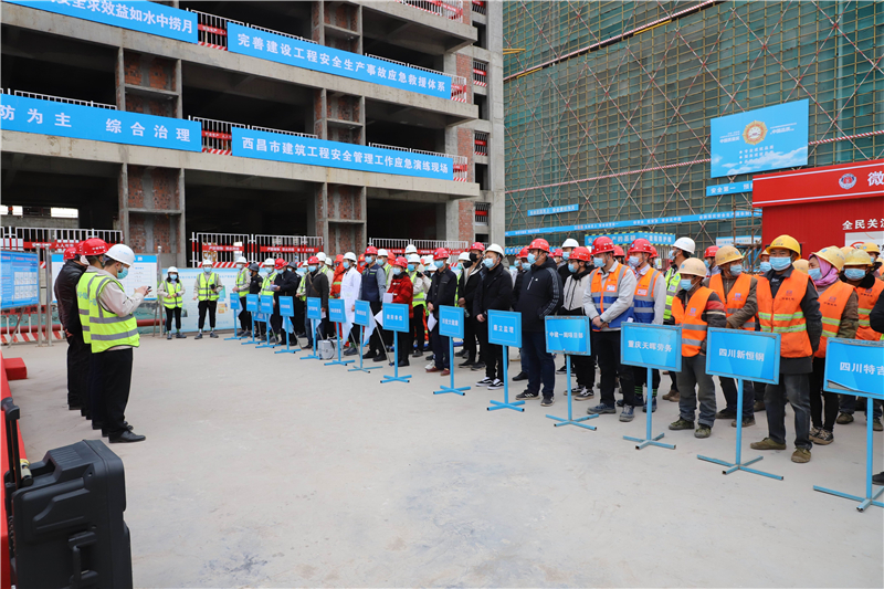 12月31日,由西昌市政府主辦,市住房和城鄉(xiāng)建設(shè)局、市建筑工程管理局、市消防大隊(duì)、市公安局、市攀鋼醫(yī)院、西昌大健康公司、中建一局川投西昌醫(yī)院項(xiàng)目部共同承辦的“2020年建筑工程管理事故應(yīng)急演練現(xiàn)場(chǎng)會(huì)”在川投西昌醫(yī)院項(xiàng)目現(xiàn)場(chǎng)舉行。西昌市副市長(zhǎng)冉洪全出席活動(dòng)。