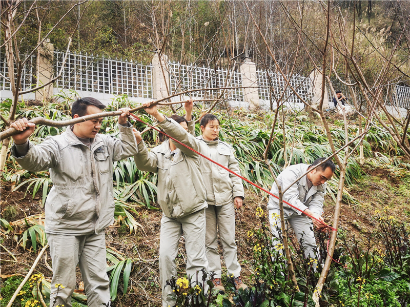 在活動(dòng)過程中,黨員們充分展現(xiàn)了不怕臟、不怕苦、不怕累的勞動(dòng)精神,互相配合,有的壓枝剪枝、有的拉線固定、有的揮鍬刨坑、有的澆水施肥,兩人一組,三五成群,干的熱火朝天、汗流浹背。經(jīng)過3個(gè)多小時(shí)的緊張勞動(dòng),對(duì)活動(dòng)陣地的40余棵桃樹進(jìn)行了完美“整形”,提高了桃樹結(jié)果的條件,為陣地今年的桃子增產(chǎn)打下了基礎(chǔ)。