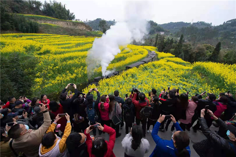 油菜花兒漫山開,蒸汽火車從中來。作為景區(qū)的金字招牌,“花季之旅”吸引著眾多省內(nèi)外游客蜂擁而至,競相乘坐開往春天的小火車穿越花海。正處于建設(shè)沖刺期的川投峨旅為有效緩解往年一票難求、一座難求的現(xiàn)象,打破景區(qū)道路以及小火車運力瓶頸,開展了一系列卓有成效的工作:新開通的塘芭路、菜芭路快速旅游通道正式打通了景區(qū)交通大動脈,游客自駕更加便捷,芭蕉溝核心區(qū)引流效果明顯;新亮相的侏羅紀探險谷、炫彩熱氣球觀光項目體驗獨特,感官刺激,驚叫連連;新開業(yè)的嘉陽禮物文創(chuàng)基地、蘇聯(lián)專家樓酒店獨具特色,進一步豐富了景區(qū)業(yè)態(tài);新推出的夜間鐺鐺車、夜游黃村井、影劇院點唱充分滿足游客游玩體驗需求,備受好評。