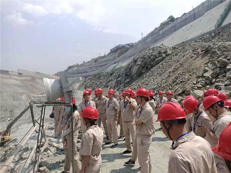 在施工變電站現(xiàn)場(chǎng),徐孝剛運(yùn)用自己多年工作積累的水電建設(shè)知識(shí)和工程管理經(jīng)驗(yàn),對(duì)金沙江流域整體規(guī)劃、銀江水電站主要特點(diǎn)難點(diǎn)以及當(dāng)前的關(guān)鍵重點(diǎn)等進(jìn)行了講解。隨后,徐孝剛又帶領(lǐng)全體員工深入砂石骨料加工系統(tǒng)、混凝土拌和系統(tǒng)、導(dǎo)流明渠工程、銀江大橋等各施工現(xiàn)場(chǎng),逐一對(duì)各部位的工程特點(diǎn)、管理重點(diǎn)進(jìn)行講解。