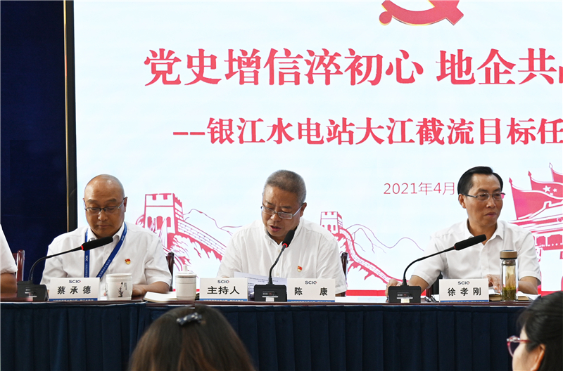 會(huì)議由東區(qū)區(qū)委常委、政法委書(shū)記、銀江水電站項(xiàng)目推進(jìn)領(lǐng)導(dǎo)小組常務(wù)副組長(zhǎng)陳康主持,川投能源副總經(jīng)理、攀水電公司黨總支書(shū)記、董事長(zhǎng)徐孝剛,黨總支副書(shū)記、總經(jīng)理蔡承德,副總經(jīng)理周軍及公司黨員代表和東區(qū)政府相關(guān)部門(mén)等共計(jì)40 余人參會(huì)。