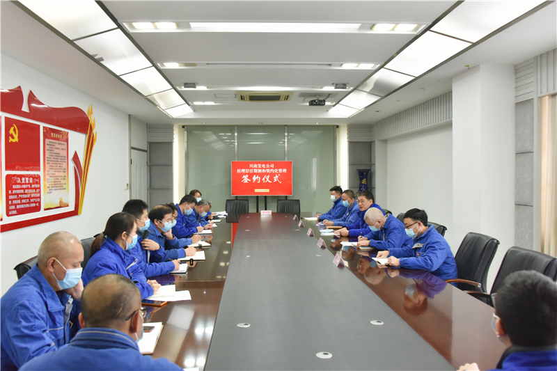 11月23日上午,川南發(fā)電公司舉行了經(jīng)理層任期制和契約化管理簽約儀式,標志著公司國企改革三年行動邁出重要一步。簽約儀式由公司黨委副書記、工會主席黃松主持。公司黨委書記、董事長劉勝金、黨委副書記、總經(jīng)理陳嵩等在家領(lǐng)導班子成員及各部門負責人參會。
