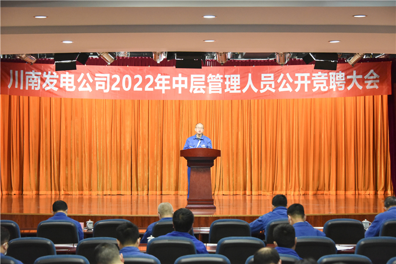 4月1日,川南發(fā)電組織召開了2022年中層管理人員公開競聘大會。會議由公司黨委副書記、工會主席黃松主持。公司黨委書記、董事長劉勝金出席會議并講話。公司黨委副書記、總經理陳嵩及其他公司領導、全體中層管理人員及職工代表四十余人參加會議。