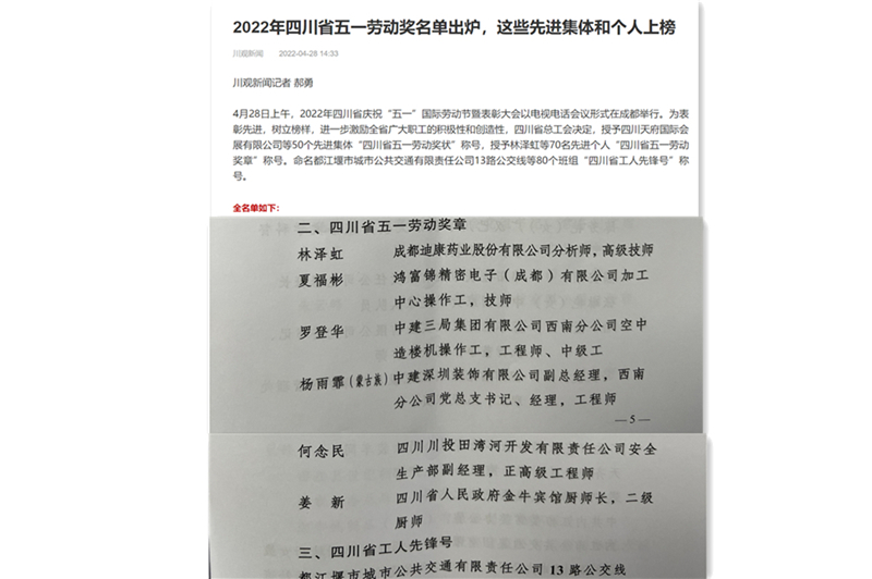 在2022年“五一”國(guó)際勞動(dòng)節(jié)即將來(lái)臨之際,田灣河公司員工何念民喜獲四川省“五一”勞動(dòng)獎(jiǎng)?wù)?。這也是自2009年公司全面投產(chǎn)發(fā)電以來(lái)相隔12年,公司員工再次獲得這一省級(jí)殊榮。