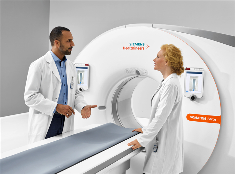 西門子雙源Force CT是德國(guó)工業(yè)水平巔峰之作,開辟了全新的CT影像新時(shí)代。它采用世界最先進(jìn)的雙球管和雙探測(cè)器的獨(dú)特架構(gòu),具備業(yè)界最快的掃描速度、最多樣的功能成像、最高的分辨率、最清晰的圖像和最低的輻射劑量,突破血流、呼吸、心跳、不自主運(yùn)動(dòng)的禁忌,實(shí)現(xiàn)“無(wú)限制”全身成像,顯著提升診療的精準(zhǔn)性,比如:復(fù)雜心律和高心率的心臟成像,1秒全身成像,Tin雙能成像,80cm超大范圍動(dòng)態(tài)血管成像,全器官灌注成像,0.06mSv的超高清肺成像和微量對(duì)比劑增強(qiáng)大血管成像等。