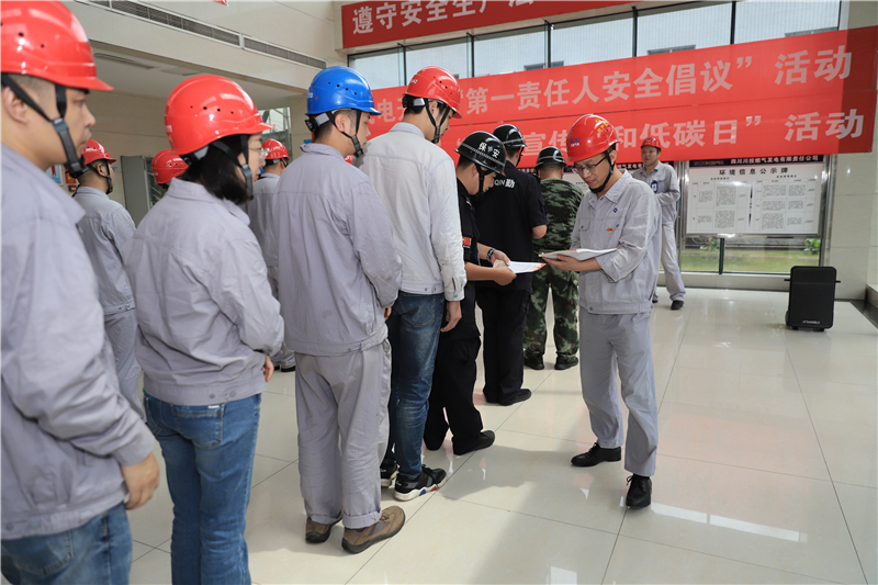 活動現(xiàn)場,蔡宏倡議廣大員工嚴格遵守安全生產(chǎn)法,當好第一責任人,扛起安全生產(chǎn)管理責任。嚴天元宣讀《節(jié)能承諾書》,號召大家節(jié)約每一度電、每一滴水,為實現(xiàn)“綠水青山藍天”的公司愿景貢獻綿薄之力。
