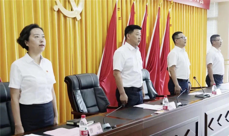 大會在雄壯的國歌聲中拉開帷幕。錚錚誓言、澎湃力量,面對鮮艷的黨旗,學院黨委書記、理事長張中偉帶領全體黨員重溫入黨誓詞:“我志愿加入中國共產黨,擁護黨的綱領,遵守黨的章程......”鏗鏘有力的宣誓,表達了新時代共產黨員的責任與擔當,許下了對黨忠誠、牢記使命的堅定承諾。