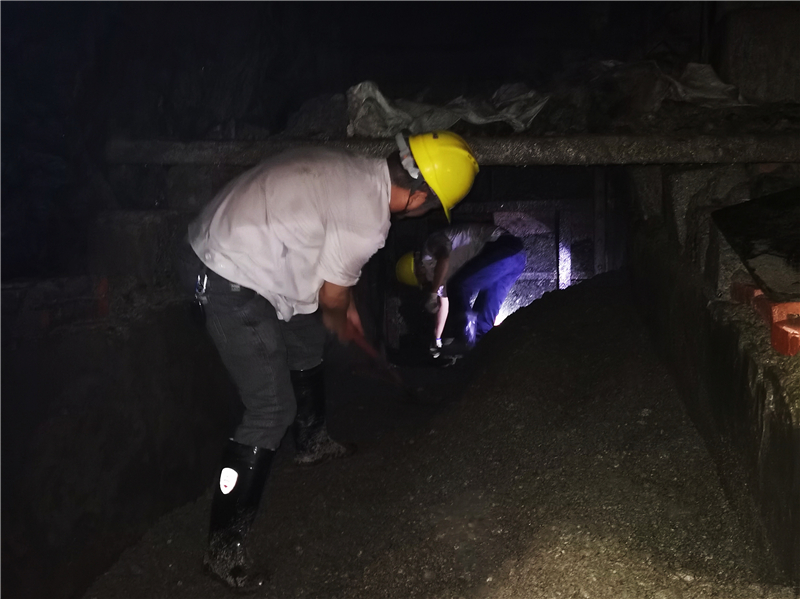 沙金車間職能自發(fā)電運行轉(zhuǎn)為引水入庫后,在公司保電保供工作起著至關(guān)重要的作用。清淤搶險的集結(jié)令吹響,公司各級領(lǐng)導(dǎo)親臨現(xiàn)場周密部署、坐鎮(zhèn)指揮,在家輪休的員工提前收假趕回一線,就連剛經(jīng)歷過一夜奮戰(zhàn)抗洪的員工也不愿下火線,14日8時車間全員集結(jié)到場。面對洪峰過處的一片狼藉,大家只有一個想法:與時間賽跑,與困難抗爭,一定要盡快搶通引水通道!大型搶險機械不能進場,員工們就扛起鐵鍬直接上陣;洞內(nèi)低矮陰暗、泥濘不堪,卻沒人在意環(huán)境的惡劣和身體的不適;為爭分奪秒加快進度,大家連吃飯都是輪流蹲在洞口草草解決,在“搶險不冒險”原則下將搶險效率發(fā)揮到極致。經(jīng)過7小時高強度清淤作業(yè),最終成功搶通沙金車間引水廊道,將回龍溝清泉源源不斷引入了鳳鳴湖水庫。