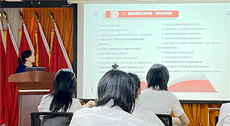 培訓(xùn)會上,華西牙科常年法律顧問泰和泰律師事務(wù)所徐靜律師作了《國有企業(yè)外派董監(jiān)高履職風(fēng)險(xiǎn)防范》專題授課,從外派董監(jiān)事的法定義務(wù)、履職義務(wù)、履職過程中的風(fēng)險(xiǎn)防范做了詳細(xì)講解。