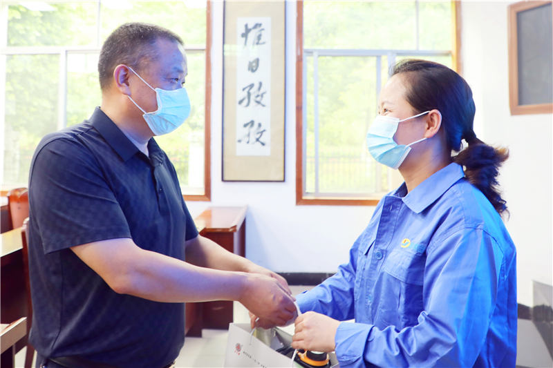 鄧安林一行對堅守在一線的職工們代表們致以誠摯的問候和崇高的敬意,為他們送上水杯、金銀花、菊花茶等防暑降溫物品,并詳細(xì)了解職工的生產(chǎn)工作情況和高溫勞動防護(hù)措施落實情況,叮囑廣大職工做好疫情防控和自身防暑降溫工作,合理調(diào)整作息時間,確保安全生產(chǎn)。鄧安林強(qiáng)調(diào),企業(yè)要努力為職工創(chuàng)造良好的生產(chǎn)作業(yè)環(huán)境,切實保障職工安全和身體健康,提高職工群眾的獲得感、幸福感、安全感,營造企業(yè)與職工共創(chuàng)共享的和諧氛圍。