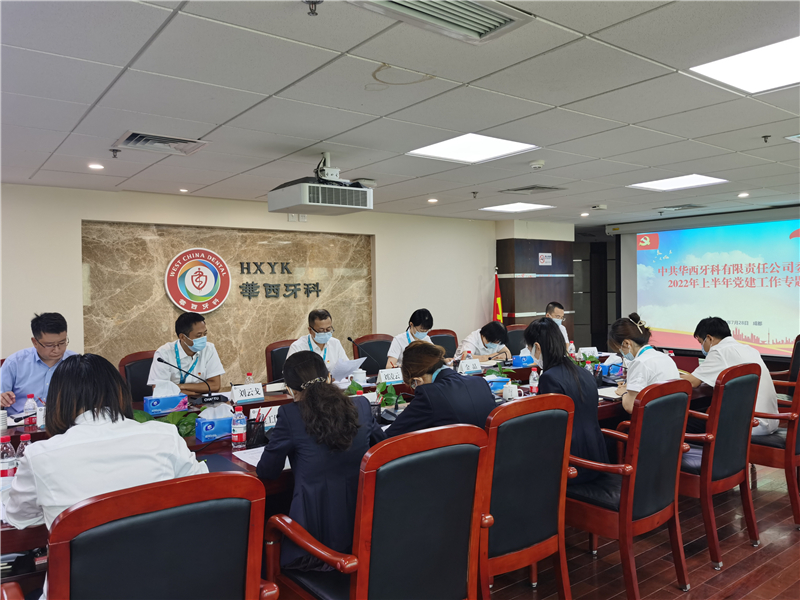 7月29日下午,華西牙科黨委召開(kāi)2022年上半年黨建工作總結(jié)專題會(huì)。華西牙科黨委書(shū)記、董事長(zhǎng)劉凌云主持會(huì)議,黨委副書(shū)記、職工董事、工會(huì)主席金晶,黨委委員、副總經(jīng)理劉云戈,黨委委員、董事、財(cái)務(wù)總監(jiān)王海帆,副總經(jīng)理李景雨,黨委委員、紀(jì)委書(shū)記鄧云斌,各黨總支、黨支部書(shū)記,公司各部門負(fù)責(zé)人參加會(huì)議。