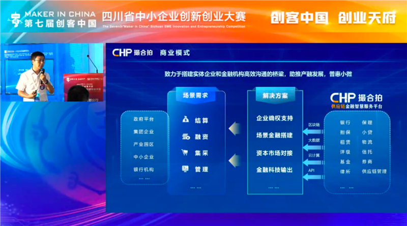 近日,由四川省經(jīng)濟(jì)和信息化廳、四川省財(cái)政廳指導(dǎo),民生銀行成都分行主辦的第七屆“創(chuàng)客中國·創(chuàng)業(yè)天府”四川省中小企業(yè)創(chuàng)新創(chuàng)業(yè)大賽“民生銀行成都分行賽區(qū)”預(yù)選賽在成都舉行。川投信產(chǎn)所屬四川川投云鏈科技有限公司參賽,參賽項(xiàng)目“撮合拍供應(yīng)鏈金融智慧服務(wù)平臺”從企業(yè)組13個項(xiàng)目中脫穎而出,榮獲企業(yè)組二等獎,成功晉級選拔賽。