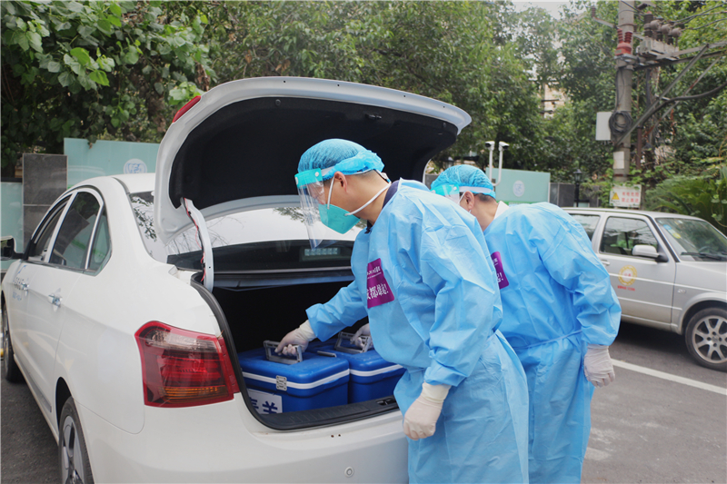 連日來(lái),成都市開(kāi)展多輪核酸檢測(cè),每一次大規(guī)模核酸檢測(cè)都是一整套精密組織的系統(tǒng)工程,除了在采樣點(diǎn)進(jìn)行信息登記、采樣的醫(yī)務(wù)人員,還有一群特殊的工作人員,他們身著防護(hù)服,手提送檢專用箱,穿梭在采樣點(diǎn)與實(shí)驗(yàn)室之間,他們就是核酸樣本轉(zhuǎn)運(yùn)員。