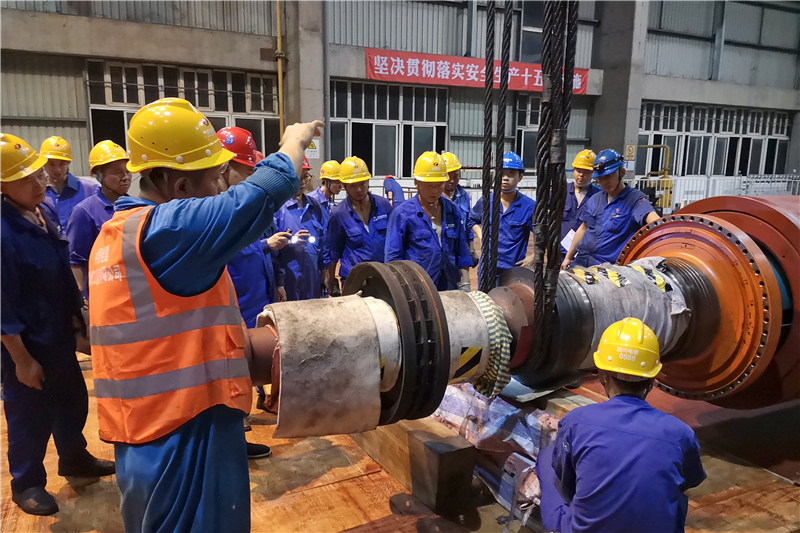 “轉子聯(lián)軸滑塊已取出”“汽側轉子護環(huán)已通過?!彪S著對講機里短促有力的發(fā)聲,公司2號發(fā)電機抽轉子一次成功,標志著2號發(fā)電機檢修工作完成重要節(jié)點,為高質量完成發(fā)電機檢修任務奠定了堅實基礎。