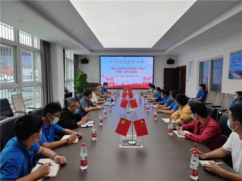 按照活動安排及疫情防控要求,公司于9月24日利用銀江大講堂的舞臺,邀請水電五局項目部副總工齊磊,給各參建單位相關(guān)人員開展了“水電工程基坑開挖技術(shù)與質(zhì)量控制”技術(shù)交流,從基坑開挖技術(shù)與質(zhì)量控制兩個方面,詳細(xì)講解了機械破巖、爆破破巖的方法及其適用條件和優(yōu)缺點,并從現(xiàn)場質(zhì)量控制出發(fā),講解了質(zhì)量要點和質(zhì)量驗收控制重點。在交流課的最后,齊磊結(jié)合基坑的工程特點和地質(zhì)情況,分析了創(chuàng)建邊坡樣板工程的重點和難點,各參建單位就如何提高工程質(zhì)量及創(chuàng)建樣板工程進行了充分討論,提出了若干解決辦法,并共同發(fā)出了積極爭創(chuàng)樣板工程的號召。