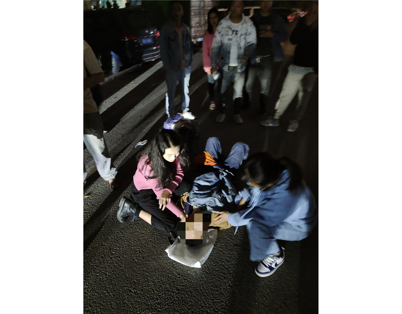 2022年10月8日傍晚,西昌醫(yī)院西門外發(fā)生一起交通事故。恰好路過此處的醫(yī)院外科護士楊露和宋玲立即跑向前查看受傷男子的傷勢情況,傷者躺在距車輛十米左右的位置,護士楊露和宋玲上前發(fā)現(xiàn)傷者無應(yīng)答、意識不太清醒的情況下,楊露和宋玲利用平時積累的專業(yè)知識對受傷男子進行了初步的傷勢評估,并且安撫著受傷男子的家屬,建議到醫(yī)院接受進一步的檢查。幾分鐘后,120救護車趕到現(xiàn)場,為了避免發(fā)生第二次傷害,楊露和宋玲又幫著隨車醫(yī)生將傷者抬上了救護車。