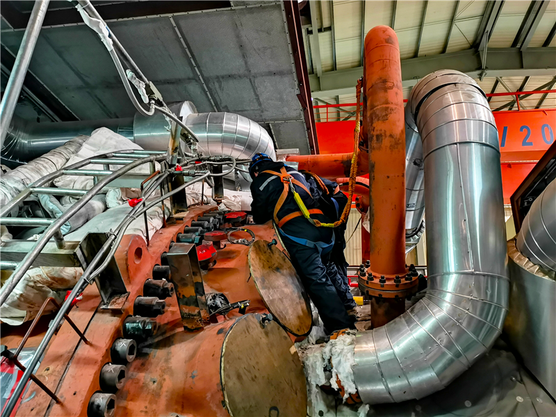 攻堅(jiān)克難,嚴(yán)把檢修工藝標(biāo)準(zhǔn)。目前,#2機(jī)燃燒室檢查、余熱鍋爐再熱器底部漏煙氣治理、循環(huán)水泵技改、天然氣調(diào)壓站技改及防腐、電氣設(shè)備預(yù)防性試驗(yàn)與清掃等工作正有條不紊地開展中。面對工期緊、任務(wù)重、技術(shù)難度大等困難,檢修人員始終堅(jiān)守在檢修現(xiàn)場的最前沿,牢牢把握檢修工藝根本要求,全力做到“應(yīng)檢必檢、檢必檢好”,確保高效優(yōu)質(zhì)地完成此次機(jī)組檢修任務(wù)。