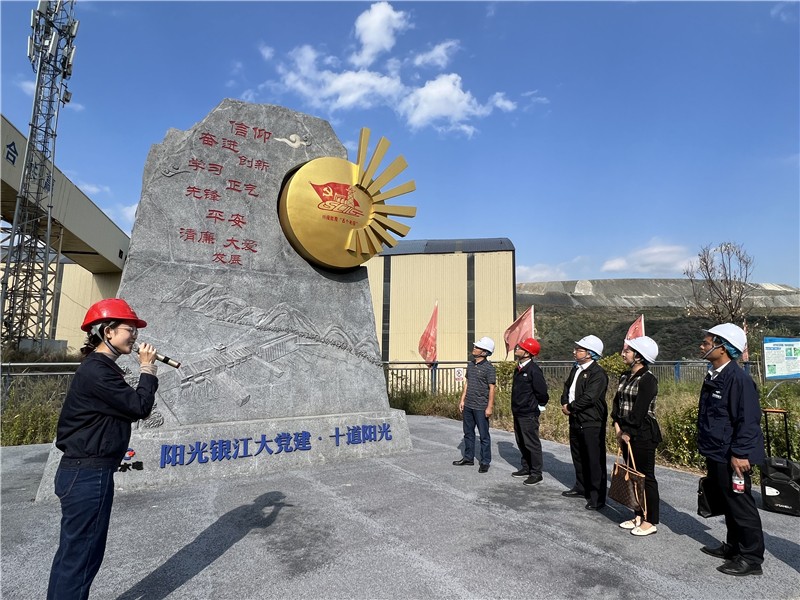 覃鳳荏一行首先來(lái)到銀江水電站施工現(xiàn)場(chǎng),參加了銀江水電站大壩首倉(cāng)混凝土澆筑活動(dòng)。在現(xiàn)場(chǎng)聽(tīng)取了銀江水電站工程整體規(guī)劃、建設(shè)意義、工期計(jì)劃等基本情況介紹,并參觀了鋼筋加工車(chē)間、試驗(yàn)室等地。隨后,覃鳳荏一行參觀了攀水電公司“七色陽(yáng)光大黨建”宣傳陣地,詳細(xì)了解了“十道陽(yáng)光行動(dòng)計(jì)劃”等內(nèi)容。