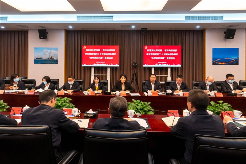 11月21日,田灣河公司黨委與東方電機黨委在德陽東方電機廠聯(lián)合開展學習貫徹黨的二十大精神“共學共研共建”主題活動。東方電機有限公司黨委書記、董事長王軍,黨委副書記、總經(jīng)理鄢志勇,黨委副書記、工會主席徐學文,副總經(jīng)理、總工程師梁權偉;公司黨委書記、董事長李紅,黨委副書記、總經(jīng)理楊超龍,黨委副書記、工會主席楊坤,副總經(jīng)理伍超。公司與東方電機相關部門人員參加活動。