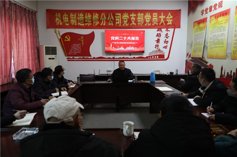 為深入學(xué)習(xí)貫徹黨的二十大精神和省委第十二屆二次全會精神,根據(jù)集團黨委安排,12月29日下午,副總經(jīng)理金大鈞赴機電制造維修分公司宣講黨的二十大精神,并提出工作要求。