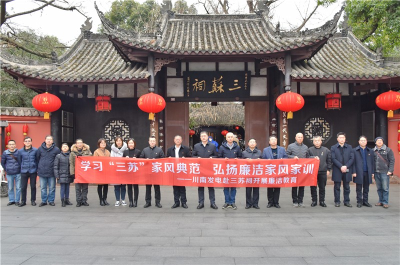 1月15日,川南發(fā)電公司組織22名黨員干部前往全國重點文物保護單位、全國愛國主題教育基地、全省廉潔文化基地——眉山“三蘇祠”家風(fēng)家訓(xùn)家教廉潔文化教育基地開展廉潔教育,學(xué)習(xí)“三蘇”廉潔家風(fēng)家訓(xùn),加強家風(fēng)家教建設(shè)。