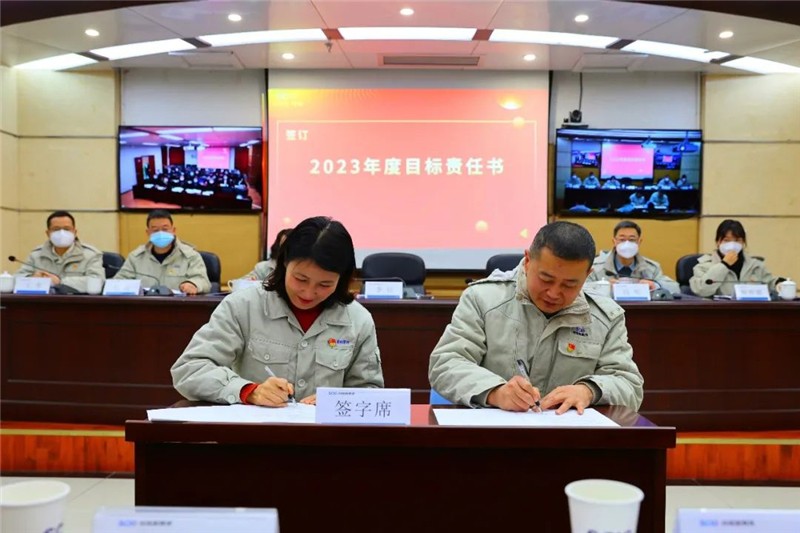 會(huì)上,李紅與楊超龍簽訂了《2023年度目標(biāo)責(zé)任書》,楊超龍代表班子與各部門(公司)主要負(fù)責(zé)人簽訂了《2023年度部門綜合目標(biāo)責(zé)任書》《2023年度部門安全環(huán)保目標(biāo)責(zé)任書》。