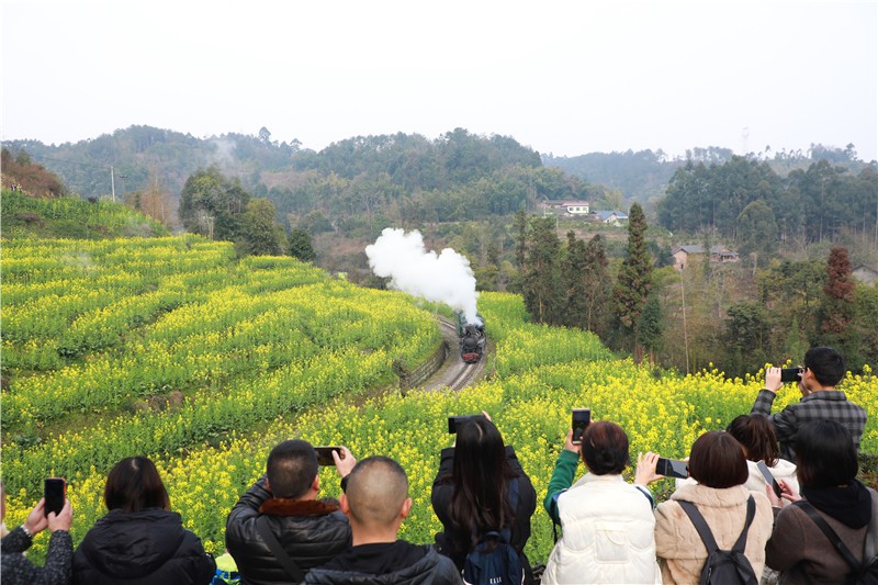 嘉陽?桫欏湖旅游景區(qū)2023年花季之旅已于2月25日進入第二階段。芭石鐵路沿線的油菜花漸入佳境,游客們紛至沓來,登上段家灣觀景平臺,親身體驗醉美穿越的絕景。