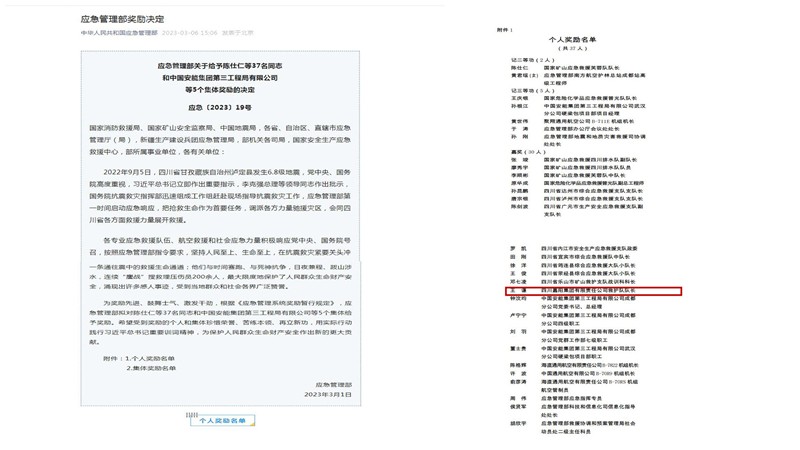 近日,中華人民共和國應(yīng)急管理部[2023]19號文件下發(fā),對瀘定抗震救災(zāi)表現(xiàn)突出的個人和集體進行獎勵,嘉陽集團礦山救護隊隊長王謙榜上有名。