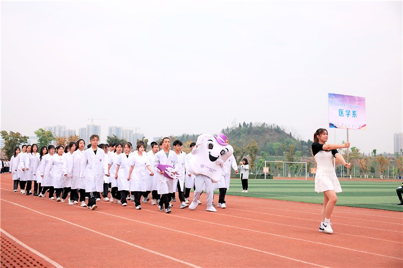 “第31屆大運會的圣火即將在成都點燃,希望同學(xué)們能發(fā)揚更高、更快、更強、更團結(jié)的奧林匹克精神,共赴大運之約,彰顯青春色彩。”近日,在資陽口腔職業(yè)學(xué)院首屆田徑運動會開幕式上,第26屆世界大學(xué)生夏季運動會體操亞軍官文荔來到現(xiàn)場為運動健兒加油助威。作為全國首家以口腔命名的職業(yè)院校,此次運動會處處呈現(xiàn)的“口腔元素”也讓這場運動會被稱為“口腔里的運動會”。