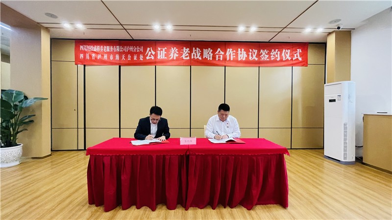 4月21日,川投大健康所屬川投盛櫸瀘州分公司與瀘州市海天公證處公證養(yǎng)老戰(zhàn)略合作協(xié)議簽約儀式在川投舒適之家?頤康養(yǎng)護(hù)院(瀘州)隆重舉行。開創(chuàng)了四川省首家“養(yǎng)老機(jī)構(gòu)聯(lián)動法律公證單位”的先例,為保障長者高品質(zhì)晚年生活賦能加持。