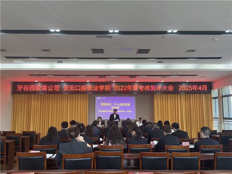 會上,牙谷園教育公司董事長、資陽口腔職業(yè)學(xué)院黨委書記、理事長張中偉代表班子作2022年度領(lǐng)導(dǎo)班子述職報告。學(xué)院領(lǐng)導(dǎo)班子成員依次作個人述職述廉報告。與會人員在認真聽取各項報告后,對學(xué)院領(lǐng)導(dǎo)班子及成員政治素質(zhì)、經(jīng)營能力、團結(jié)協(xié)助、作風(fēng)形象等方面進行了民主測評。