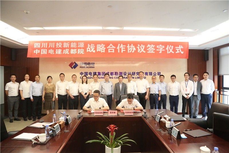 為加快推進光伏發(fā)電、風電等清潔能源項目開發(fā),助推公司高質量發(fā)展邁上新臺階,共同為落實碳達峰碳中和國家戰(zhàn)略貢獻力量,5月26日,在集團公司副總經(jīng)理張昊、中電建集團成都院黨委副書記、工會主席張世殊、集團公司總經(jīng)理助理、戰(zhàn)略投資部部長田傳平的共同見證下,川投新能源公司董事長張鵬舉、中國電建集團成都院新能源工程分公司總經(jīng)理侯彥碩分別代表雙方簽署戰(zhàn)略合作協(xié)議。